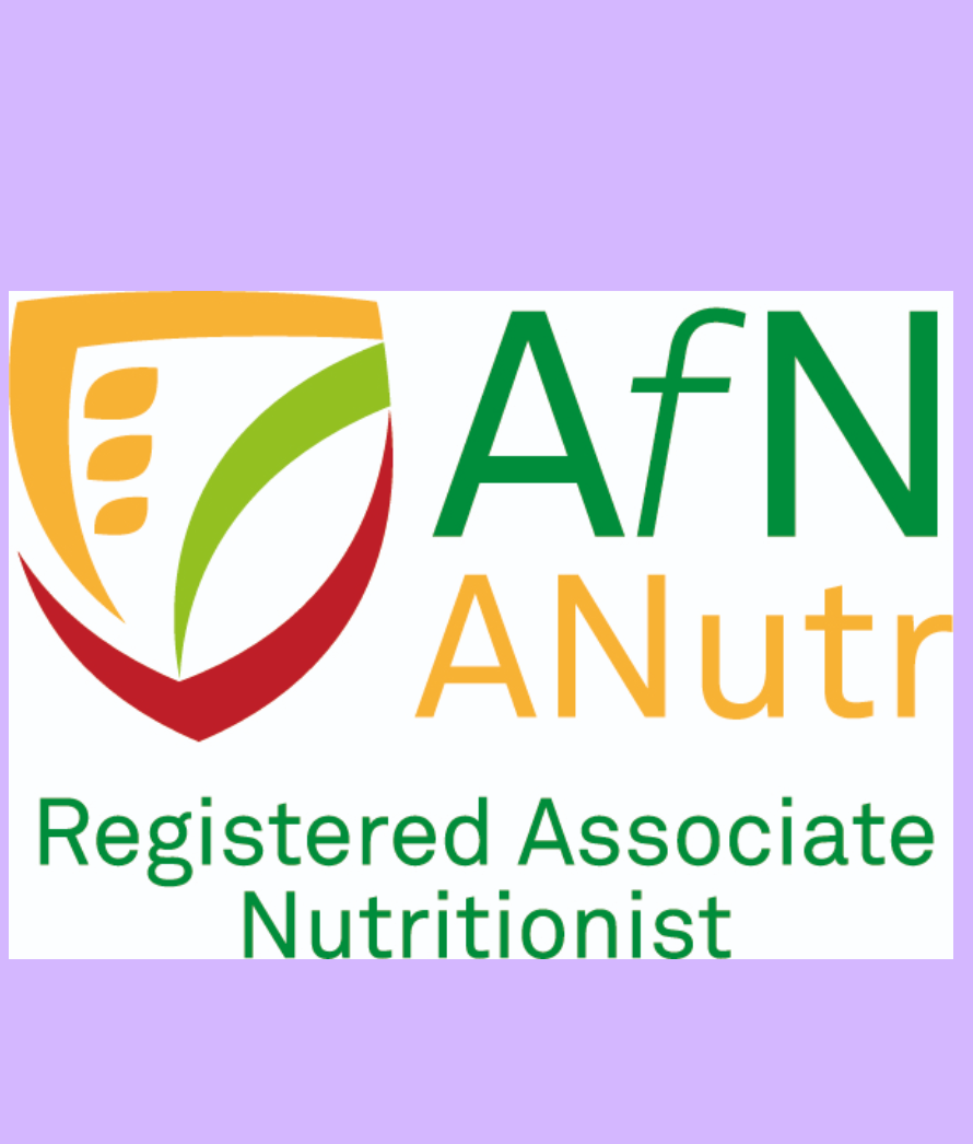I am a Registered Associate Nutritionist (ANutr), a membership upheld and regulated by the Association for Nutrition (AfN). This requires a nutrition degree, of which I hold a First Class BSc in Human Nutrition & Health. My AfN registration number is 40026.